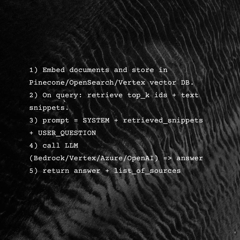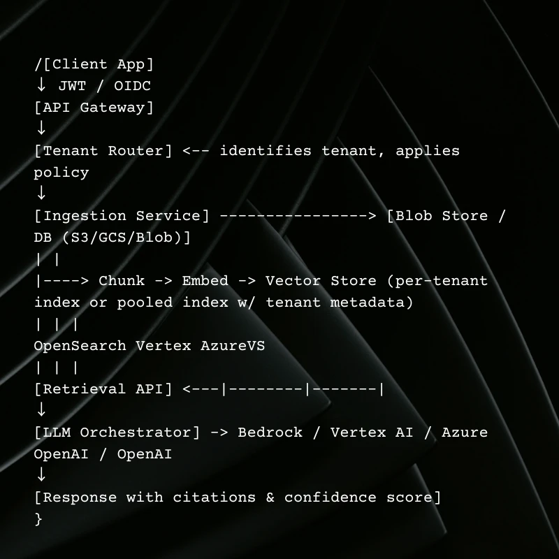 - AWS: Bedrock (LLM access) + OpenSearch or Kendra for vector + S3 for storage. Offer region-specific indices via separate OpenSearch domains or prefixes.