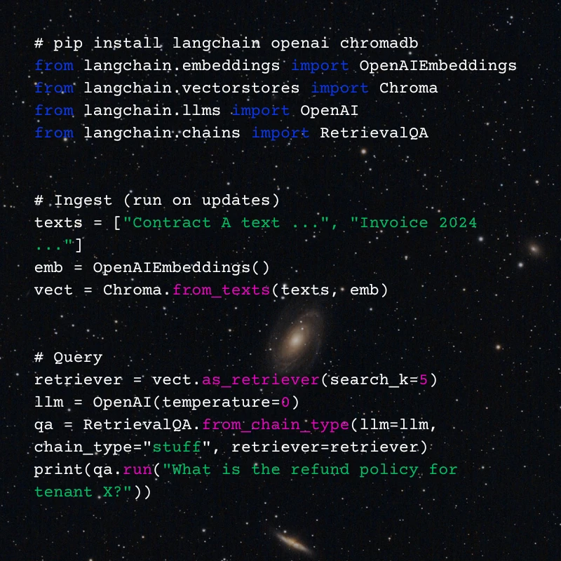 - Scaffold a repo with LangChain + Chroma + example infra (Terraform for multi-region index provisioning).